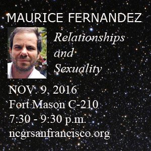 Wed., Nov. 9, 7:30-9:30 p.m., Fort Mason C-210. Please arrive by 7:15 p.m. The changing times and circumstances of the 21st Century directly affect our experience and expectations from relationships. We need to understand this context when analyzing relationship dynamics and compatibility in the chart. Maurice will describe the astrological associations to different relationship needs …